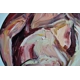An anatomical abstract contemporary painting. Textured and colourful the play of form, shades, light and colour interact and play to add life and movement, complementing the juxtapositions of colour and form.