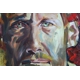 This colourful and textured painting of Michael Fassbender Oil Portrait has a unique dimensional quality achieved by the artist observation juxtaposition of colourful abstract shapes and forms.