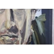 This colourful and textured painting has a unique dimensional quality achieved by the artist observation juxtaposition of colourful abstract shapes and forms.