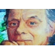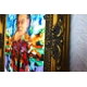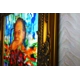 The portrait is painted in oils and varnished for protection- and yes, after 23 years it's done its job well. The Abstract background and body are Acrylic and pearlescent paints and rub on metallic transfer effects, the Same used for guiding gold. All purchase and supplied from specialist artist quality suppliers. Even today, have lost none of their freshness and shine as intended.