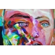 This painting is about colour and abstraction of a portrait and the application of colour and how it is rendered and mixed on the canvas creating a beautiful and poster feel.