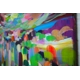 Brilliant colours create an even flowing movement, one covering and blending into the next, producing a pleasing flow of rainbow colours that help to calm and please the eye. Bold, big, bright slabs of colour applied in an abstract expressionist style creating harmony and sunny optimism. There is still the distinction between sky and land, with direction and style of brush strokes applied. A very large painting which will uplift and compliment any room or colour scheme. Sides painted.