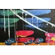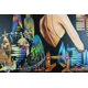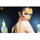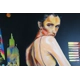 A glamorous classic portrait posed, contemporary painting. The figure is blends into the background and gives life to the London city skyline with basic line and shapes. Disguising Where the eye has to search for the missing textures. A very intriguing and decorative painting which was also inspired by classic figure model pose.