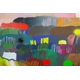 An uplifting and colourful, happy painting where nature is abstract. Colours are the main focus and used in its simplest and stylised form to produce a calming and restful place that will encourage feelings and memories of walks in parks, countryside, fields, seasons. Mixed media, paint, spray paint, pastels and markers, which give a cute child like but soulful abstract texture.