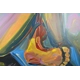 This highly pigmented painting with a creamy, thick consistency of Artist quality paint. Colourful and textured painting has a unique dimensional quality achieved by the artist observation of architectural juxtaposition of colourful abstract shapes and forms.