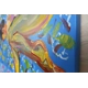 A very colourful and decorative painting which was inspired by William Morris and the need to add move interest and movement to the background.