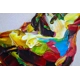The painted canvas is full of textures of merging shapes, and colours, creating the feeling of fragmented reality. Each layer of colours and shapes also helps identify. Inadvertently also adding another thick layer of fragmentation to distancing reality further.