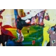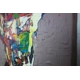The painted canvas is full of textures of merging shapes, and colours, creating the feeling of fragmented reality. Each layer of colours and shapes also helps identify. Inadvertently also adding another thick layer of fragmentation to distancing reality further.