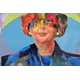 This portrait painting of Margaret Thatcher is part in abstract and realistic as the Artists experiments with shadows and light and shade of forms and colourful textural paint marks. The artist has used a multiple number of tools including brush, palette knives, scrapers and sprays. This painting has given the artist new ideas and methods for next series of works so is an important painting in the artist evolution and style of works to be painted. The artist decided on yellow hat as blue was too overwhelming and did not suite the ethics of the painting, thorough Thatcher would not approve of this.