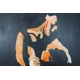 The figured is painted in large single bold strokes with muted colours emphasized painterly qualities and strong shapes over the representational or realistic values retained by observation.