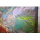 Beautiful colourful painting with bright oranges, reds and pinks and yellows. Thickly applied and textured on stretched canvas. A beautifully abstracted seance with dramatic colourful skies. Pure abstract painting where only skies and land meet, nothing else to take away the view and pure colour experience. Distant mountings rivers and trees are quickly and skilfully scraped out of wet paint, revealing highlights and giving depth to the picture.