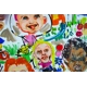 The figured is painted in large single bold strokes with bright colours emphasized painterly qualities and strong shapes over the representational or realistic values retained by observation. Brings back memories of children do the funniest things and what they say. Very little colour mixing is done, and pure tube colours are used as would a child. The portraits are much more traditional, but more caricature to suit their fascial expressions and exaggerations of features.