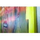 Colour is used instead of just black lines. Hidden tattoos symbols are added on the tongue which complement the portrait's character. It was experimented first with waves and other geometric lines.  Decided to keep the lines simple for now. I had to experiment with added fillers and finished being able to slide the paint onto the dried artwork underpainting. You also need to be brave in what seem to be coving your hard work with thick paint which looks like, to any viewer, is being destroyed. No, reborn into something more artistic and special.