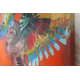 This started out being just a portrait, then developed by combining punk rock hairstyles then Indian because of the colours, into the artwork, replacing most hair whole or in part. After experimenting further and liking the composition, it became more abstract style of hairstyles with shape and colour. Further the need to bring more colour and shape to the actual face tattoo expressionist textures were added to the portrait plain colour background allowing the portrait to pop out and give a futurist modern and avant-garde feel.