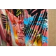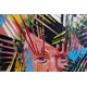 It's a lively and fun painting in a square format with sides painted, bright and colourful. Textured and dramatic play of form, shades, light interact and play to add life and movement, complementing the juxtapositions of shape and form.