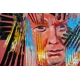 This started out being just a portrait, then developed by combining punk rock hairstyles then Indian because of the colours, into the artwork, replacing most hair whole or in part. This latest carnation is also exploring face painting in more detail. After experimenting further and liking the composition, it became more abstract style of hairstyles with shape and colour. Further the need to bring more colour and shape to the actual face tattoo expressionist textures were added to the portrait plain colour background allowing the portrait to pop out and give a futurist modern and avant-garde feel.