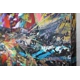 The painting is an abstract contemporary representation of Landscape. The colours, wild, thick and bold marks