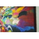 Brilliant colours create an even flowing movement, one covering and blending into the next, producing a pleasing flow of rainbow colours that help to calm and please the eye. Bold, big, bright slabs of colour applied in an abstract expressionist style creating harmony and sunny optimism. There is still the distinction between sky and land, with direction and style of brush strokes applied. A very large painting which will uplift and compliment any room or colour scheme. Sides painted.