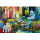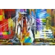 This colourful and textured painting has a unique dimensional quality achieved by the artist observation of architectural juxtaposition of colourful abstract shapes and forms. Tall skyscrapers reflections on glass, innovative materials and build techniques. Famous new and old landmarks form shapes with character names. Liberty, Empire, Brooklyn, Bridge, one, world, trade, centre, city, mega, USA, skyline, skyscraper, Manhattan, New York City,1,2and3 World Trade Centre,3WTC,Hudson Yards, Park Avenue, chicory, times, bank, Chester, Vanderbilt, Columbus Circle, Pyramid west 57th, Guggenheim Museum, cloud gate, Lincoln, Capitol, monument, Willis Tower, The Flatiron, Peal Harbour, and more. Textured blocks of colours and tones interplay to produce an attractive view of Manhattan, New York's evolving skyline.