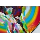 A very colourful and decorative painting which was inspired in abstract shape and form. Circles and colour add movement interest to the background.