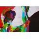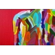 The figure is painted in small single bold strokes with vibrant colours. Emphasized painterly qualities and strong colour over the representational or realistic values. Over 40 different colours and shades were used to help easy transition between the darks and lights of the body's from. It was very time-consuming mixing the colours than adding them in the correct place and then applying juxtaposition of similar shade but different colour.