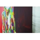 A very colourful and decorative painting which was inspired in abstract shape and form. Circles and colour add movement interest to the background.